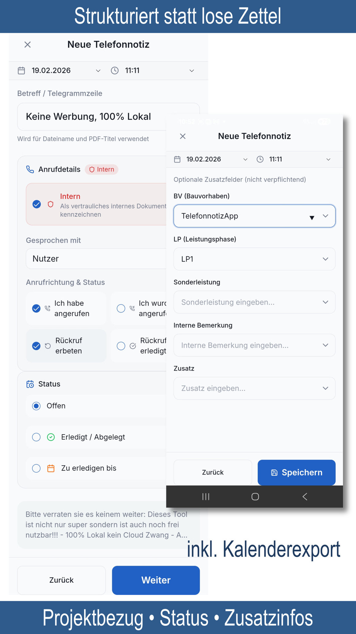 Unsere neue Telefonnotiz-App erzeugt revisionssichere A4-PDF-Telefonnotizen für professionelle Büro- und DMS-Umgebungen.